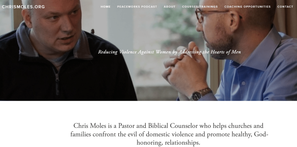 Reducing Violence Against Women by Addressing the Hearts of Men. Su proposito principal es educar a la Iglesia en prevenir el abuso domestico. Cris Moles es un pastor que enfrenta los maldades de este abuso.