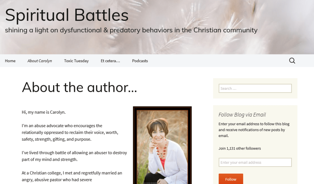 Ayuda a las mujeres que han sido victimizadas por los lideres de la Iglesia. Articulos sobre el abuso sexual y la violacion mundialmente tanto como en los Estados Unidos. Videos de predicaciones de pastores que predican sobre abuso domestico en sus iglesias. Recursos para los pastores de una congregacion tanto para las esposas abusadas.